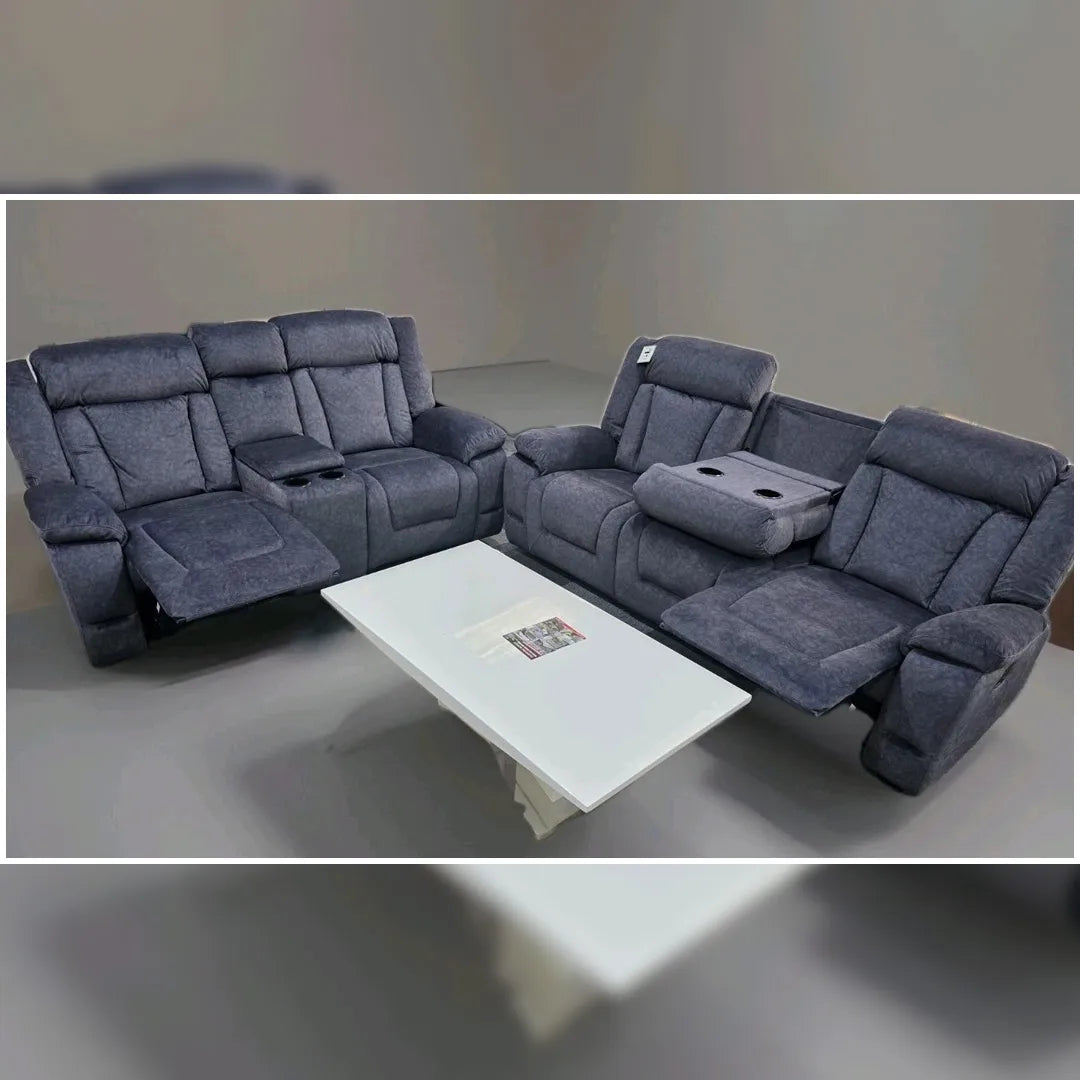 Beunis Aire 3+2 Plush Velvet Manual Recliner Sofa Set – Charcoal Dark Grey