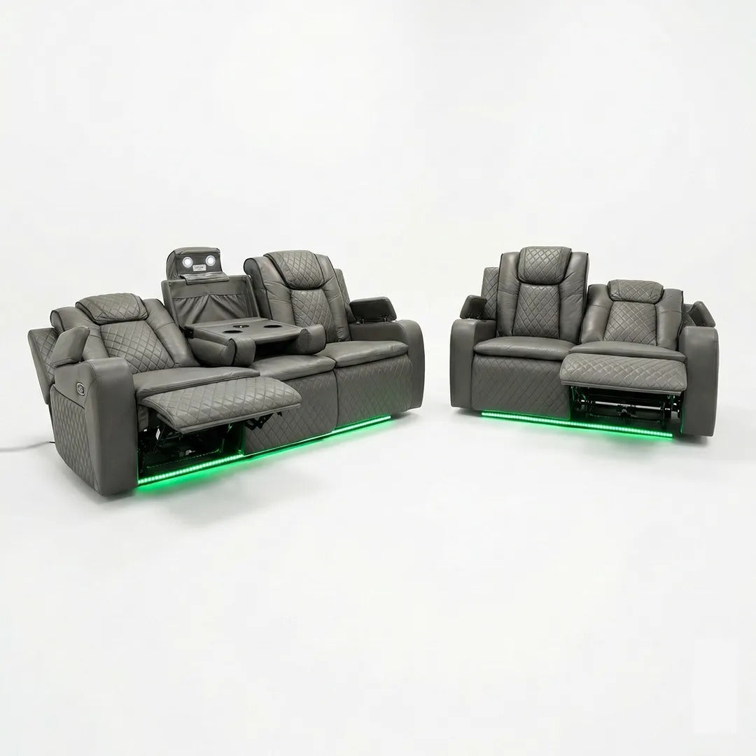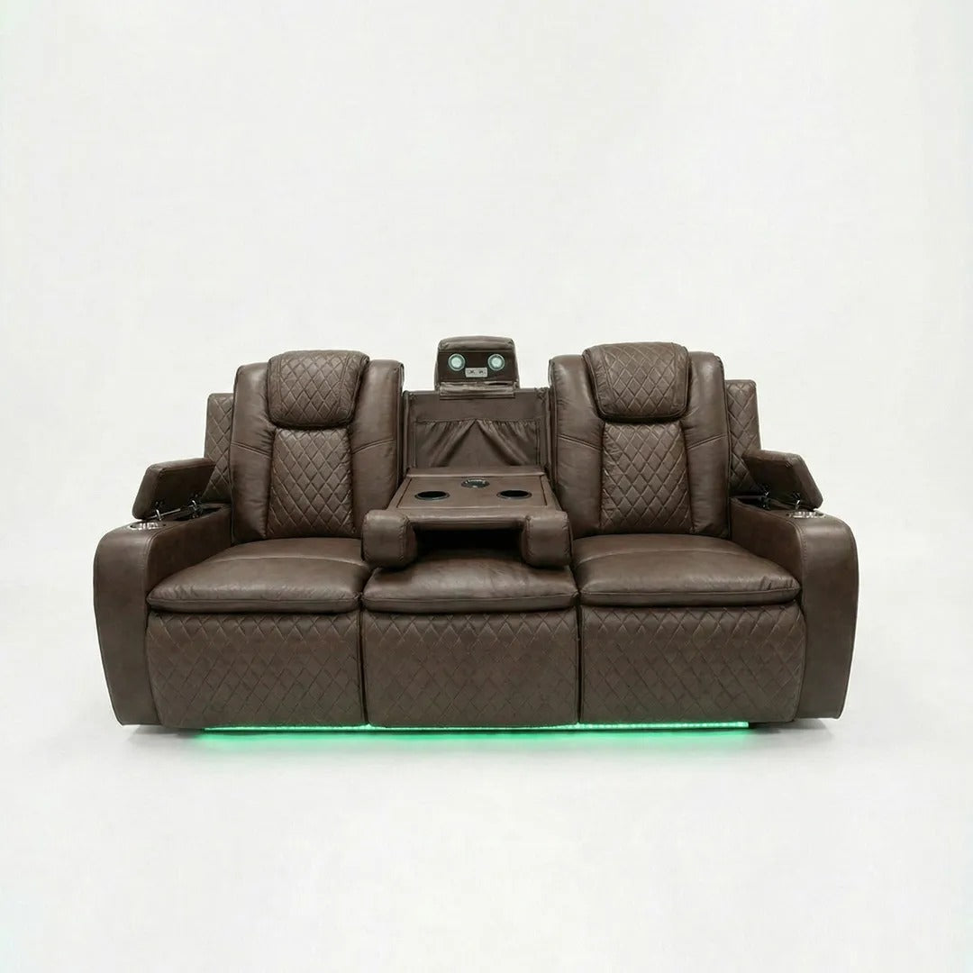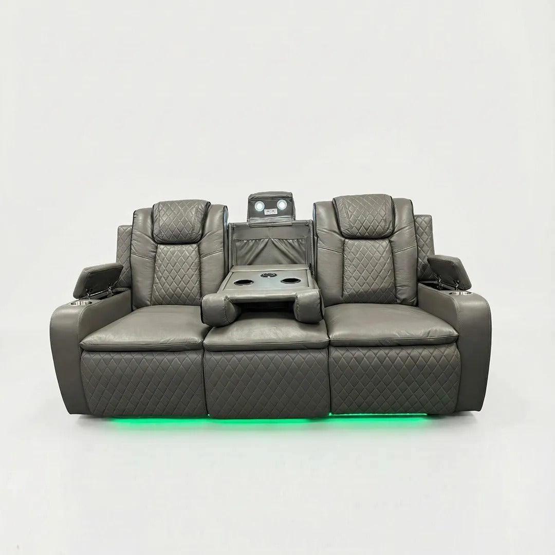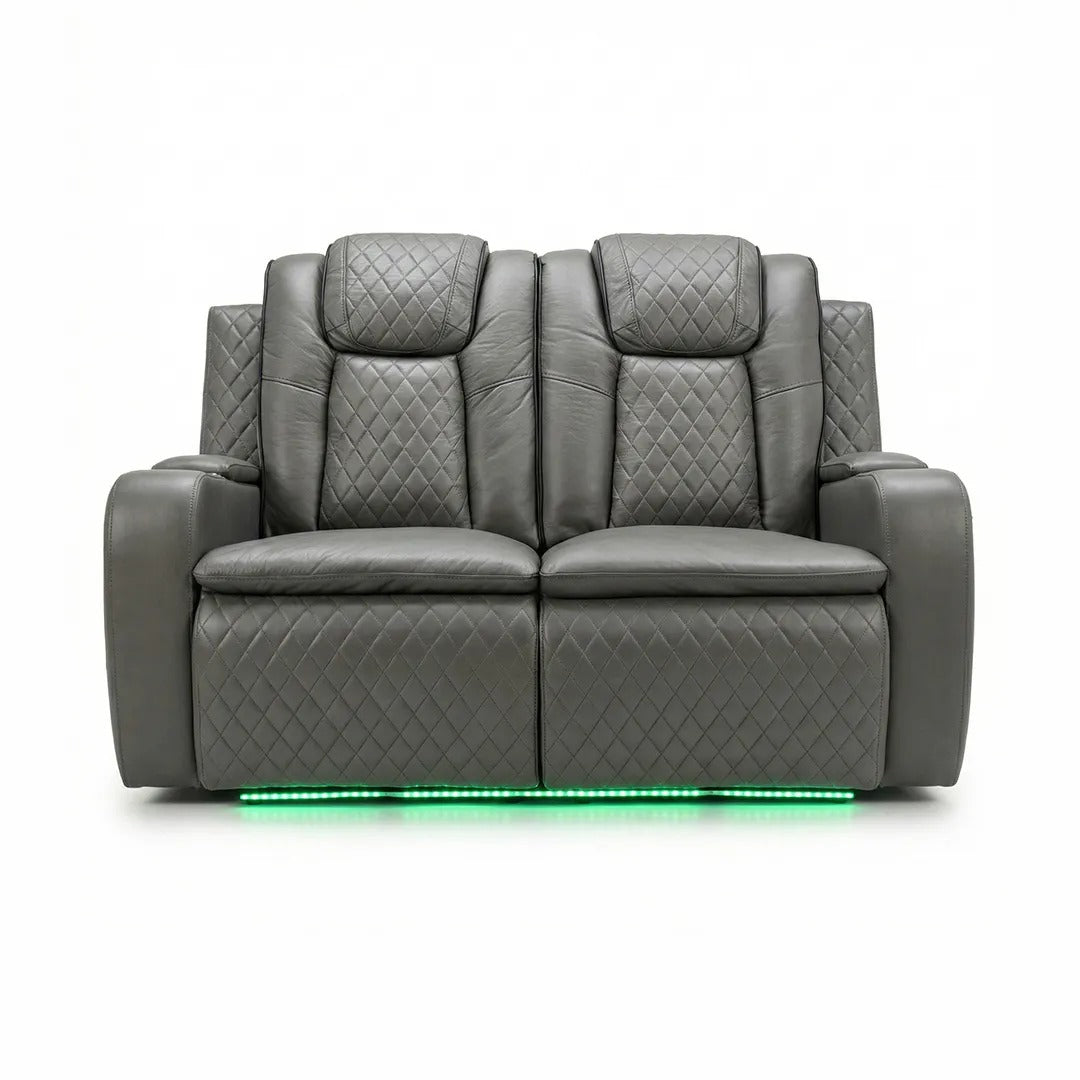 Colorado Leather Electric Recliner Sofa – Cup Holders, LED Lights, USB & Type-C Ports, Wireless Charging (Grey, Black, Brown)
