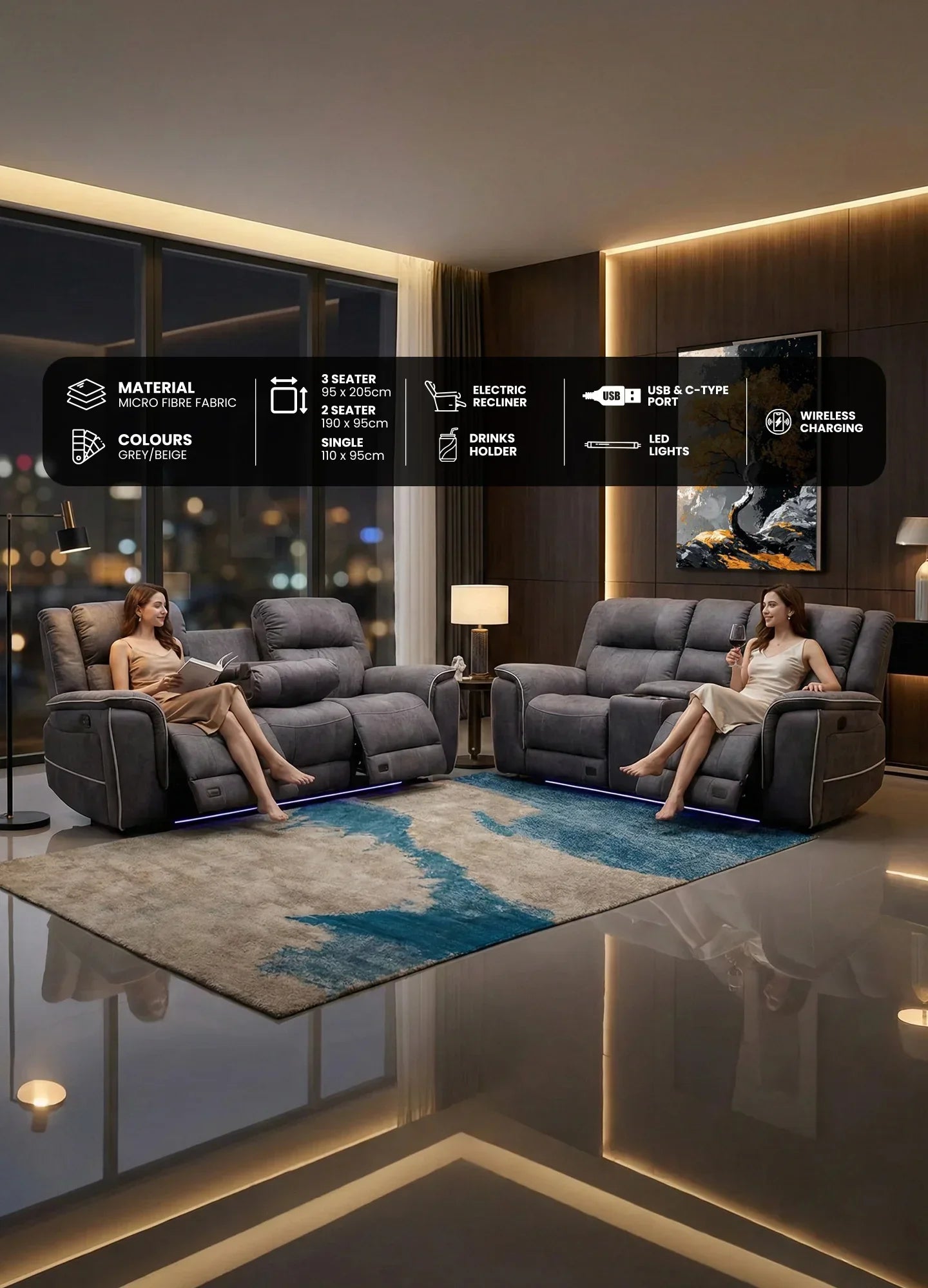 Hannah Micro Fibre Electric Recliner Fabric Sofa 3+2 Seater