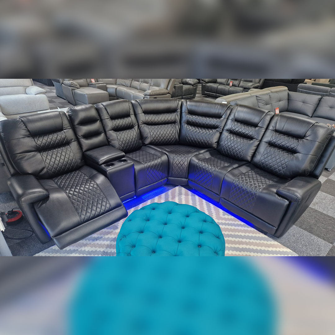 Halifax Leather Electric Recliner Corner Sofa(Black,Grey,Beige)-USB Ports/LED LIGHTS/CUP HOLDERS