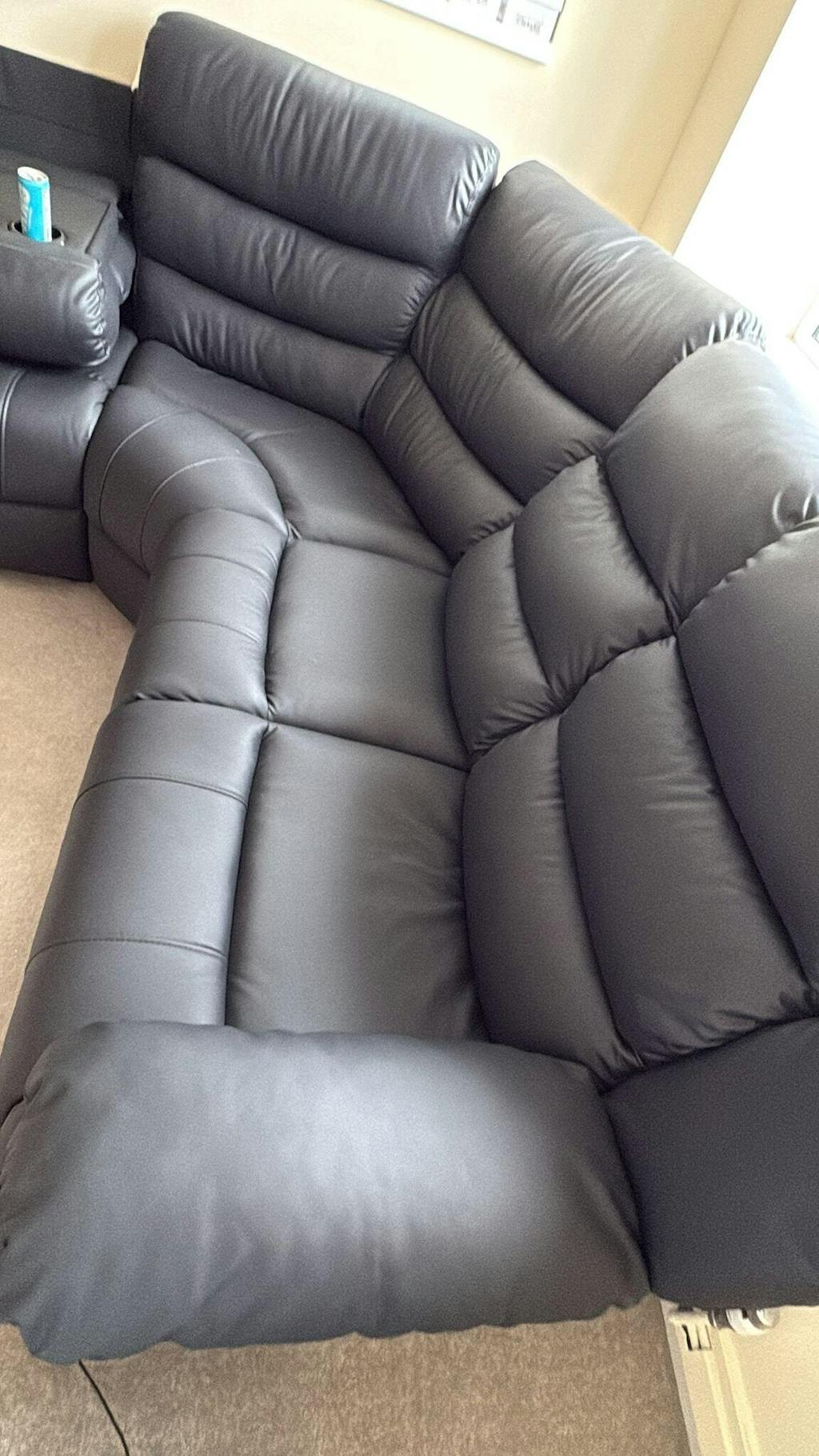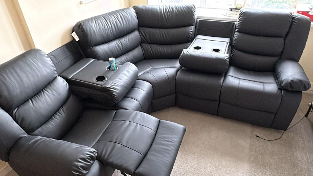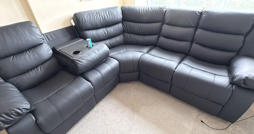 Roma Leather Recliner Corner Sofa (Black/Grey/Brown)