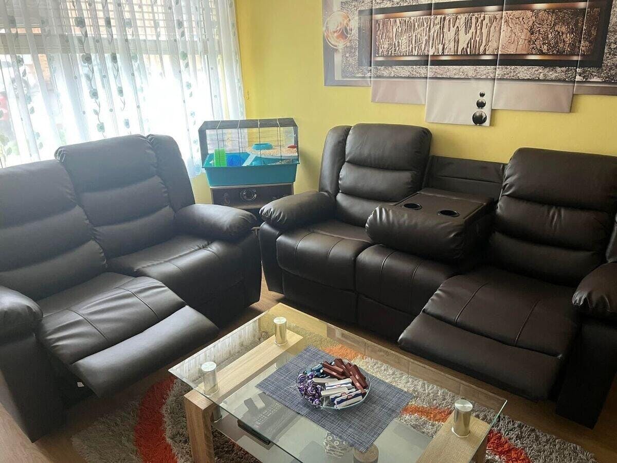 Roma Leather Recliner Sofa 3+2 Seater With Cup Holder Black/Grey