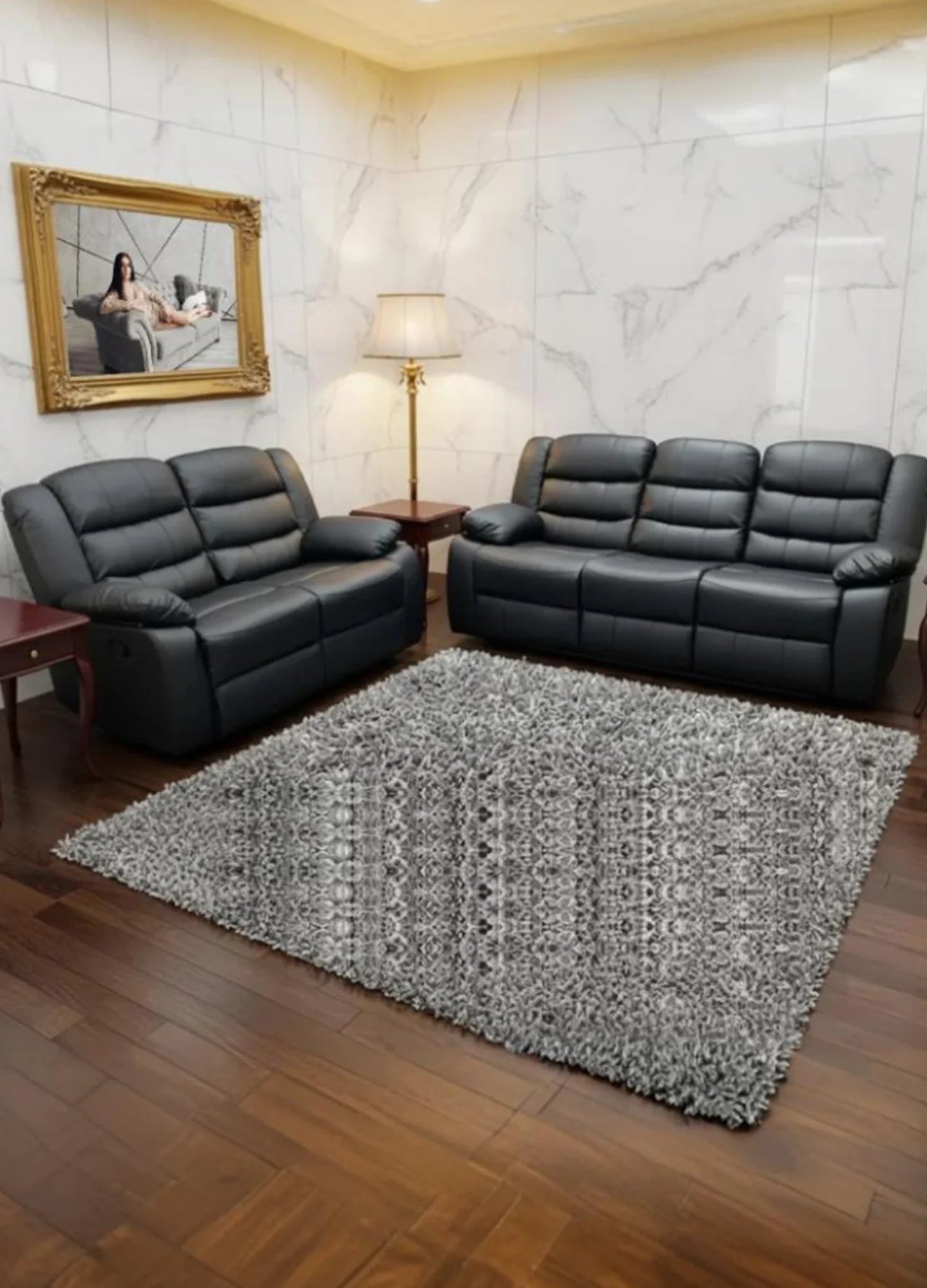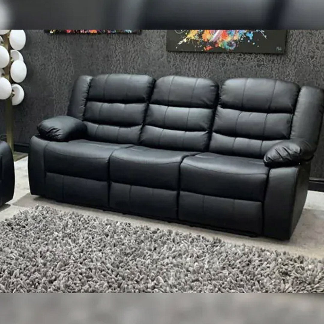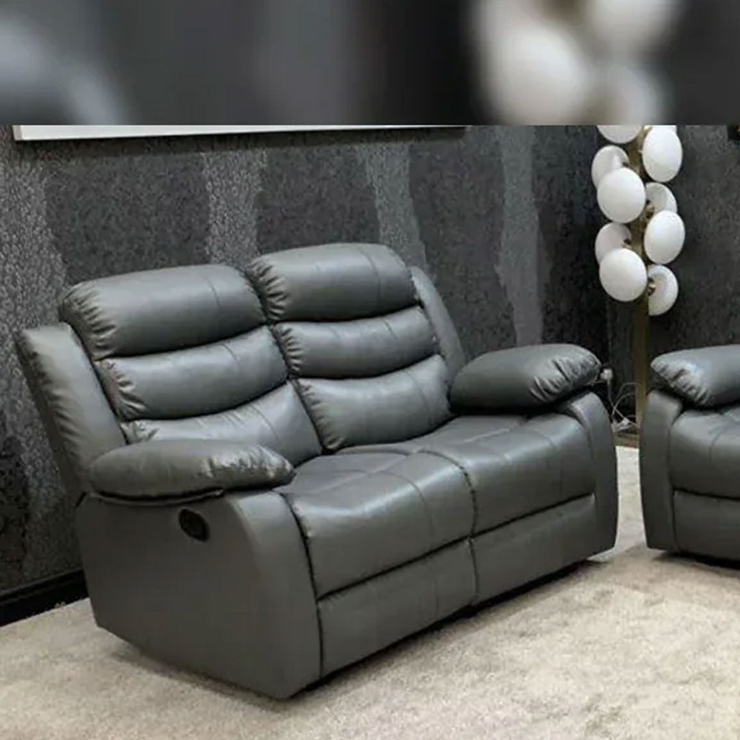 Roma Leather Recliner Sofa 3+2 Seater With Cup Holder Black/Grey