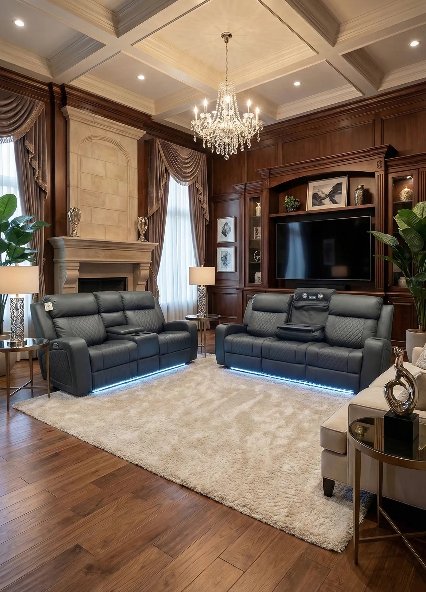 Texas Leather Electric Recliner Sofa Set – 3 + 2 Seater With Cup Holders, LED Lights, USB & Wireless Charging...