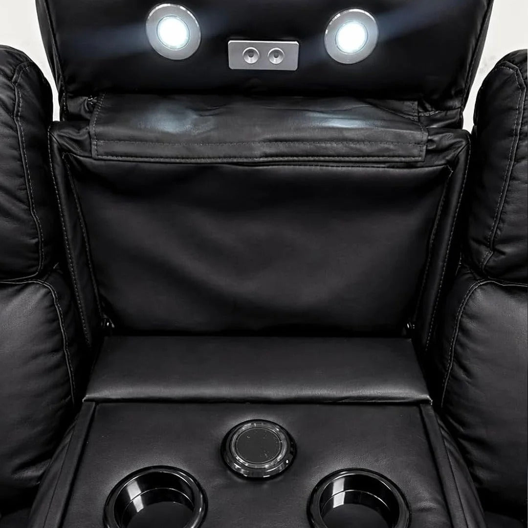 Texas Leather Electric Recliner Sofa Set 3+2 Seater with Cup Holders, LED Lights, Storage, USB Charging Ports, Type-C Charging & Wireless Charging (3+2 Seater, Black & Grey)